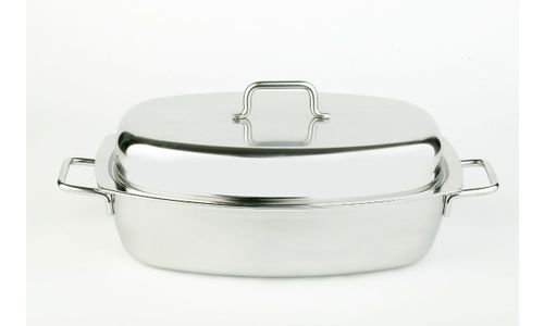 De ovale kookpot/pan met hoog deksel is perfect geschikt om te sudderen en te stoven, maar is eveneens ideaal voor het bereiden van de heerlijkste visgerechten of het braden van je kerstkalkoen. Hij is vervaardigd van hoogwaardig roestvrij staal 18/10 en kreeg de Silvinox®- oppervlaktebehandeling mee voor een nog betere bescherming en een nog mooiere, zilverwitte, matte glans. Dankzij het gebruik van 7-lagenmateriaal (2,5 mm dik) tot aan de rand krijgt men een juiste en gelijkmatige warmteverdeling, een groter bakoppervlak en, bij juist gebruik, perfecte antikleefresultaten. De ovale kookpot/pan is geschikt voor de oven en alle vuren, inclusief inductie. Demeyere biedt een garantie van 30 jaar op alle productie- of materiaalfouten, 10 jaar garantie voor professioneel gebruik.