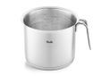 Zoek je een bijzonder handige assistent voor het afwerken van sauzen? Hier is ons roestvrijstalen hoge sauspotje. Speciaal ontwikkeld op vraag van enkele topchefs en voorzien van maatindicaties tot 1 liter. Nu kan je je saus perfect vooraf bereiden en op het fornuis warmhouden. Bij een uitgebreider menu heb je vaak enkele sauzen nodig. Dan gebruik je gewoon een paar hoge sauspotjes naast elkaar. Dat lukt probleemloos dankzij de kleine diameter van 10 cm. Geschikt voor alle kookplaten, ook inductie. Net voor je gaat serveren kan je de saus in het hoge sauspotje nog even aan de kook brengen. Indien nodig kan je ze nog verder afwerken door te monteren met boter bijvoorbeeld. Je saus schuimig maken lukt in een handomdraai, met de staafmixer, rechtstreeks in het potje. Dankzij de stevige, gelaste greep en de handige schenkrand leent het hoge sauspotje zich ook prima om zonder morsen saus uit te schenken en te portioneren op het bord of op een gerecht.