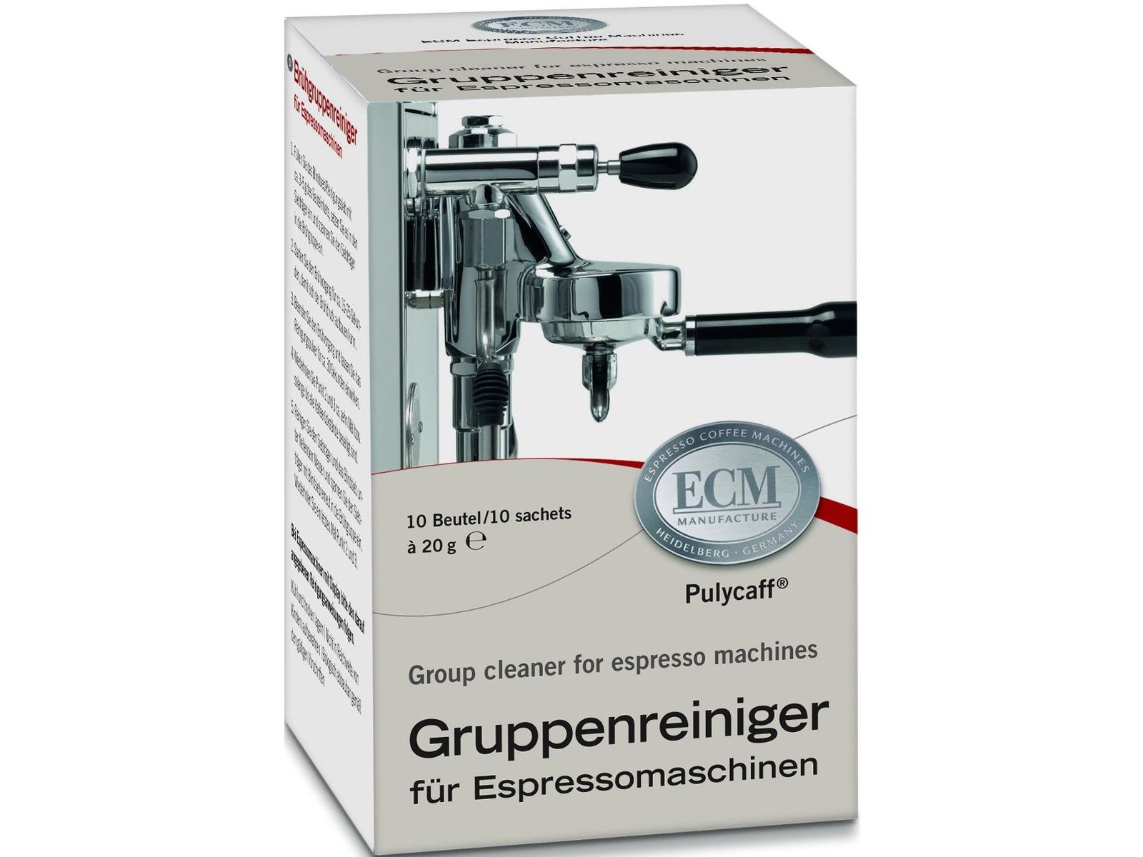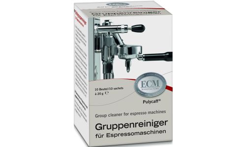 De groep dient gereinigd te worden met een reinigingspoeder of -pil. In combinatie met de blindfilter maak je de groep weer schoon en vrij van achtergebleven koffievetten. Deze vetten hebben een negatieve invloed op de smaak van de koffie. Het poeder lost deze vetten op. Leg ook eens de filterbakjes in een kom met water een wat poeder. Zo worden deze ook goed gereinigd.