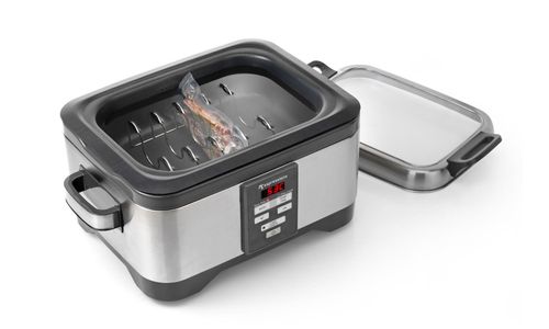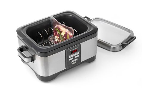 Ontdek zelf het geheim van de topchefs: Vacumeer vlees, leg de vacuümzak in het voorverwarmde water in de Slowcooker en stel de timer in. Doordat het vlees in een afgesloten zak gaart, hebben factoren van buitenaf geen invloed. Wanneer het geluidsignaal klinkt is het vlees perfect mals en ongekend vol van smaak.