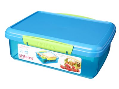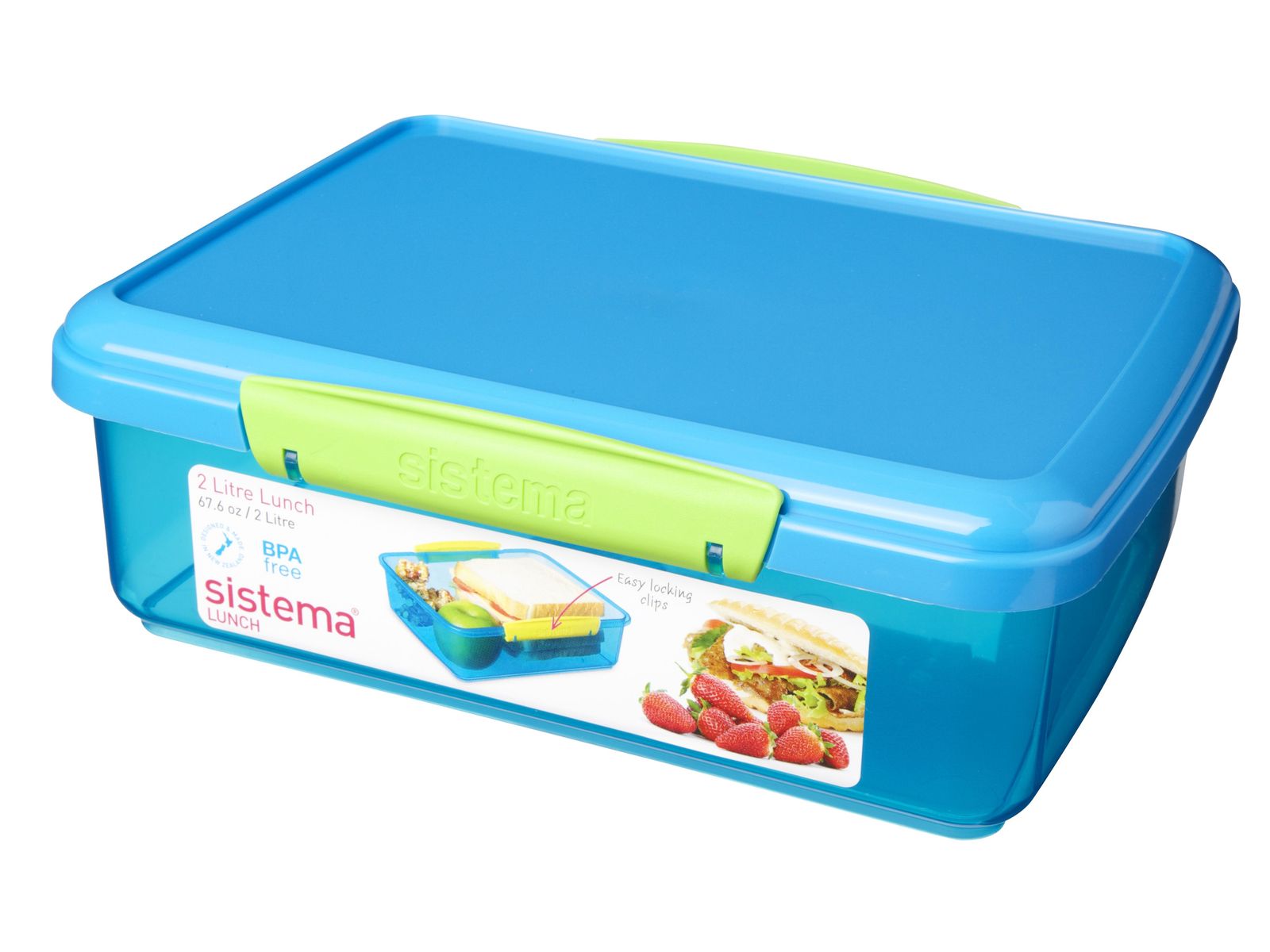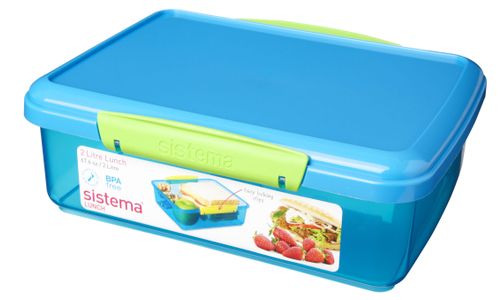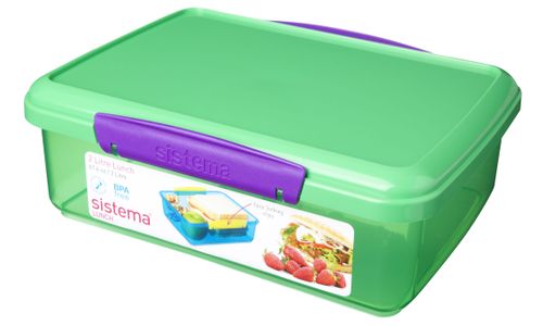 Fleur uw lunchtijd op met de kleurrijke Sistema® Lunch 2L om ervoor te zorgen dat uw voedsel vers blijft tot je klaar bent om te eten. Met de eenvoudig te vergrendelen clips en de flexibele afdichting blijft uw voedsel langer vers.