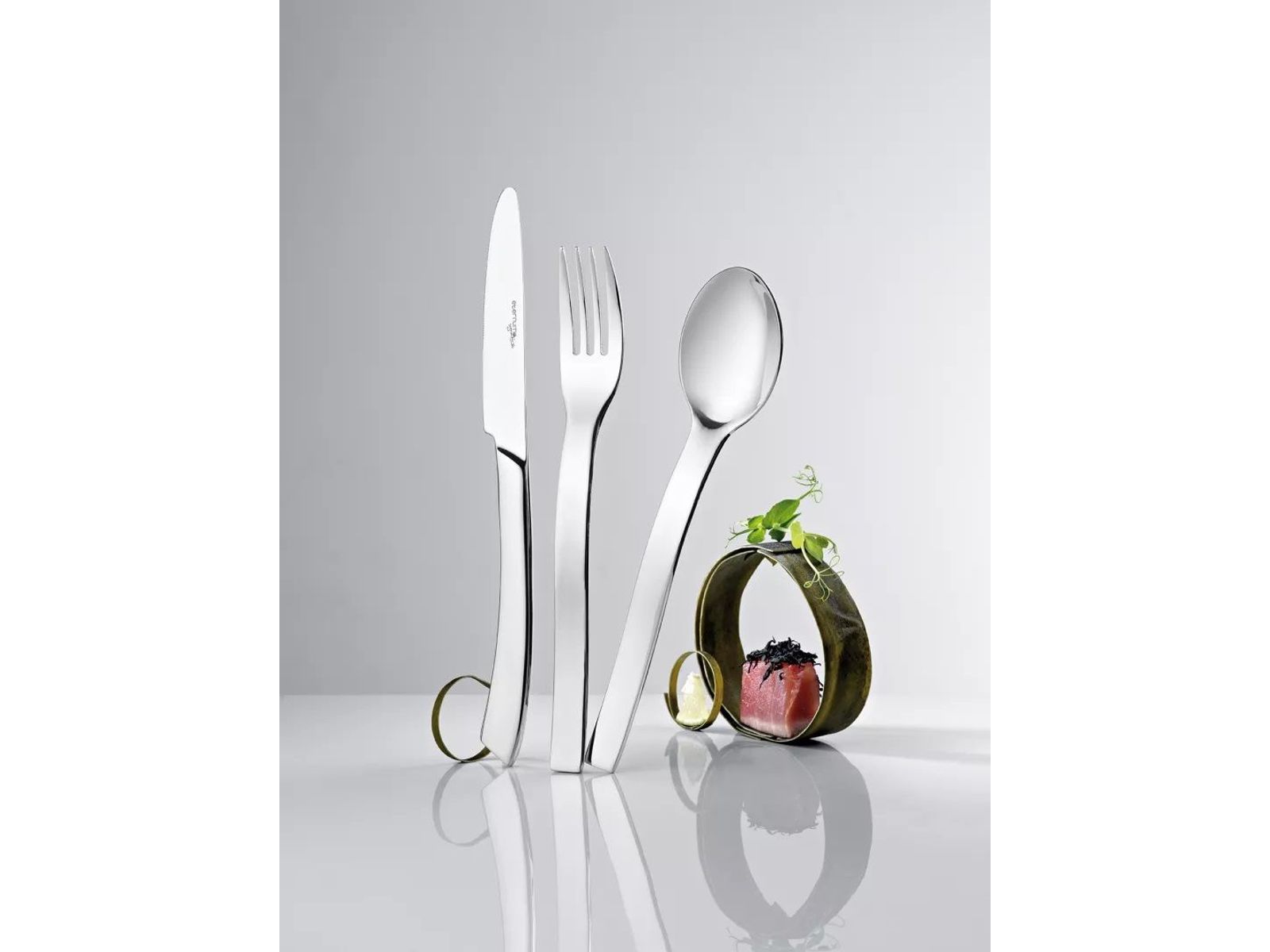 Bij chique en moderne tafels kiest u voor het bestek Alinea. Dit ontwerp doet denken aan de rimpeling op een kalme zee. De messen hebben een originele vorm.