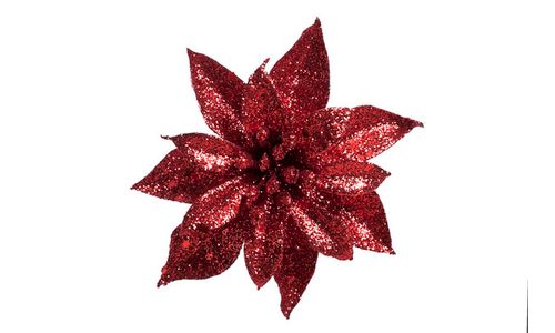 Kerstroos Clip Glitter Rood D8cm