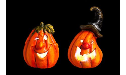 Pompoen M Led Licht Oranje 2ass 8x8x15cm Incl 3 Lr41 Batt