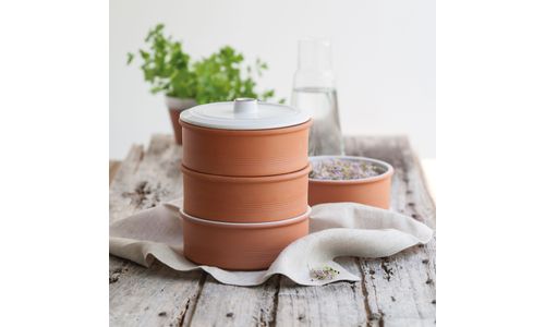 Met de terracotta kiemtoren van Point-Virgule kweek je verschillende soorten kiemgroenten tegelijk en heb je continu verse oogst.