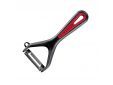 De groente- en aspergeschiller "Gallant" met beweegbaar mes is ideaal voor het schillen van ronde of langwerpige groenten en fruit zoals asperges, komkommer, aardappelen en appels. Het beweegbare mes past zich perfect aan alle contouren aan en de snijder helpt bij het verwijderen van beschadigde plekken en lelijke vlekken. Dankzij de speciale comfortabele soft-touch handgreep ligt de dunschiller perfect in de hand en dankzij de ophanglus kan hij ruimtebesparend worden opgeborgen.