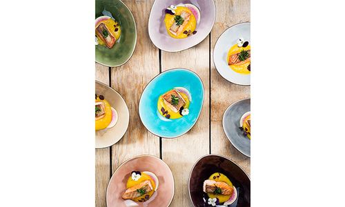 7 formaten, 10 kleuren. Organische schaaltjes voor kleine hapjes en borden voor de grotere mooi dresseerbare bereidingen. Een bonte mengeling van 10 speciale tinten, als versterkend element bij het kleurrijke voedsel van verschillende continenten dat doorgaans bij foodtrucks op de kaart staat. Streetfood Festival is vervaardigd uit aardewerk.