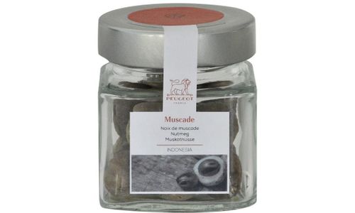 De muskaatnoot is het fruit van de tropische boom die muskaatboom wordt genoemd. Deze specerij met warme geur en met ongeëvenaarde zachte tonen versterkt perfect de smaak van uw schotels met een zachte en exotische toon. Als ze op het laatste moment wordt gemalen in een Peugeot molen, zal ze alle zachtheid onthullen en perfect passen bij uw gratins, soepen en compotes.