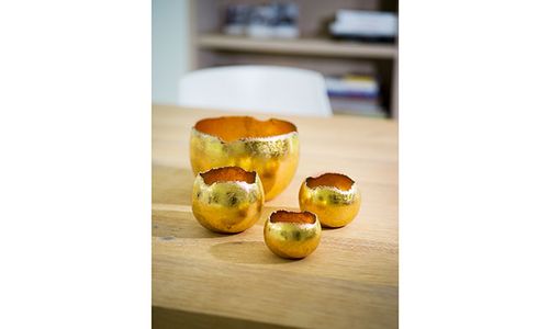 Theelichthouder Goud D15xh15cm Rond Meta Al