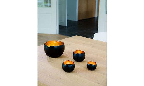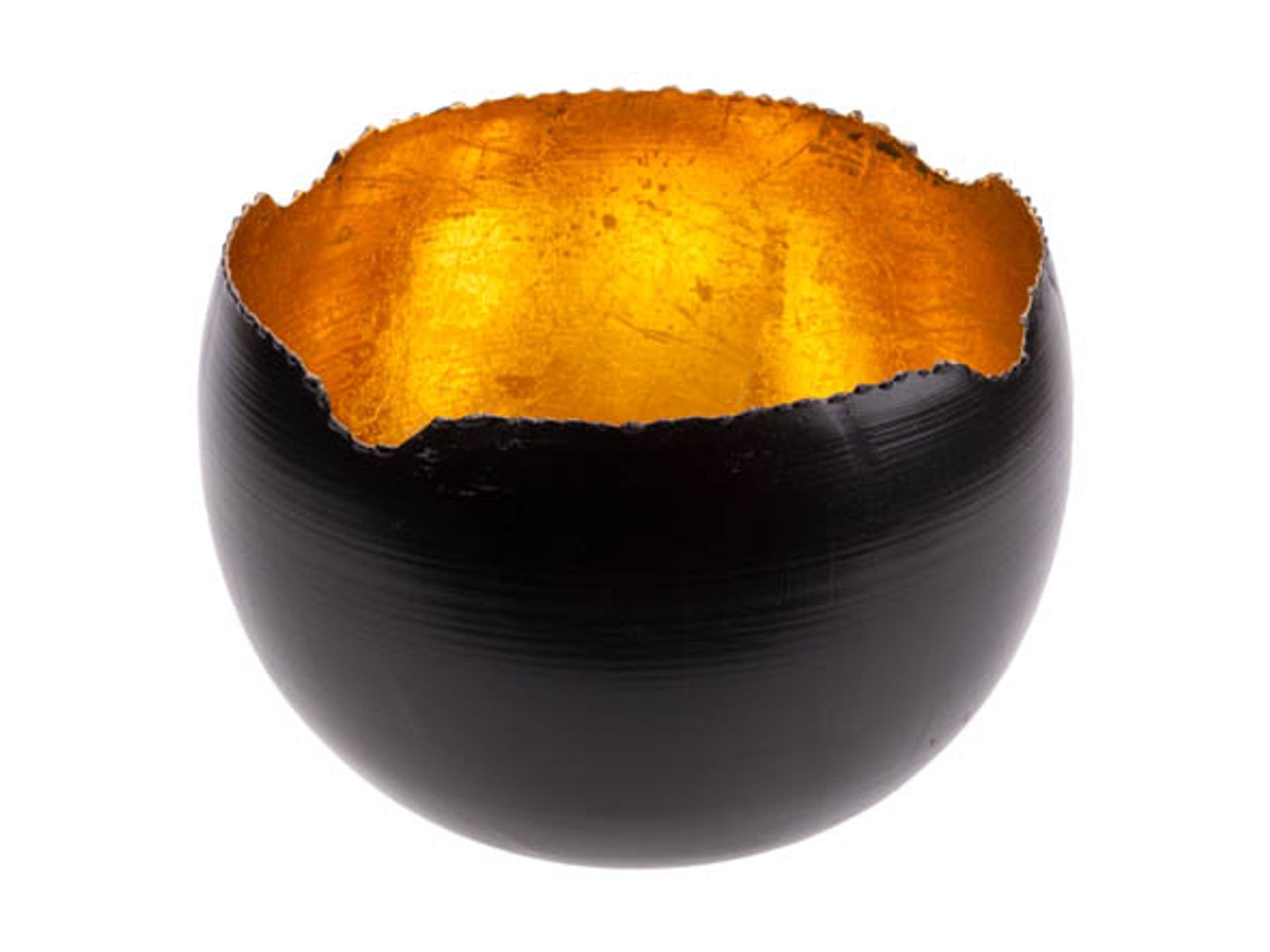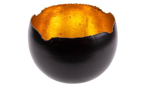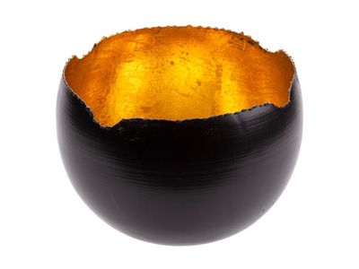 Theelichthouder Zwart D15xh15cm Rond Met Aal Goud