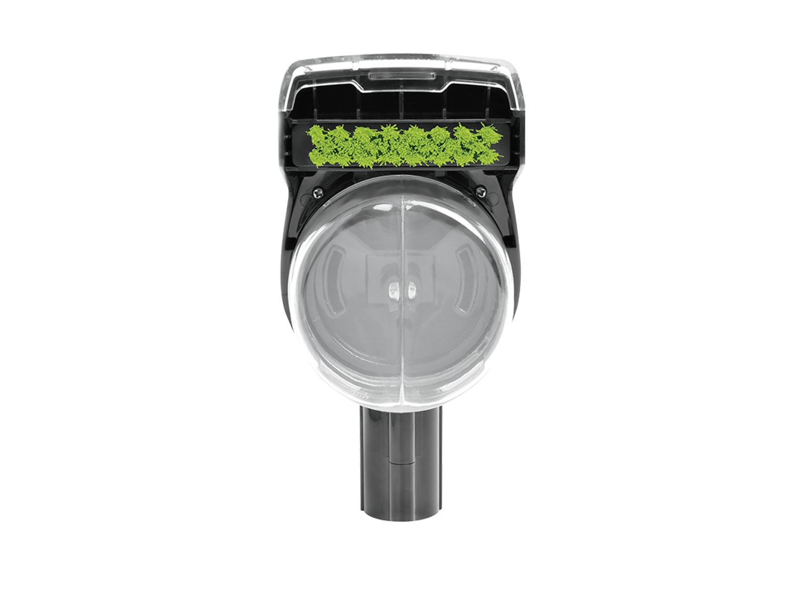 Plaats het accessoire recht op de vlek die u wilt verwijderen en activeer de trekker om een mengsel van de formule en water op de vlek te spuiten. Laat de trekker los en schrob voorzichtig met de borstel over de vlek om deze helemaal te verwijderen. Dit accessoire ruimt opgeruimd vuil op in een interne, gescheiden en verwijderbare afvalbak. Zo kunt u vuil gemakkelijk verwijderen door alleen de afvalbak leeg te maken. Het vuil komt niet in de slang of machine, zodat deze schoon blijven.