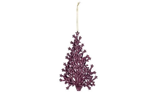 Hanger Kerstboom Glitter Framboos 15x10c M Kunststof