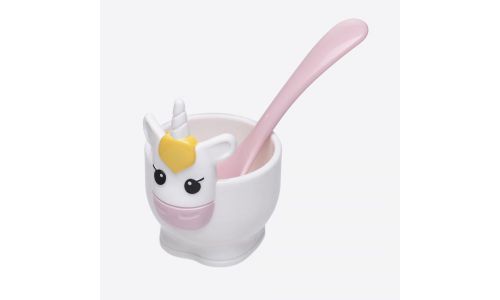 Unicorn eierdopje met lepel wit 6x5x10.3cm