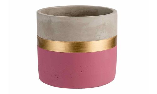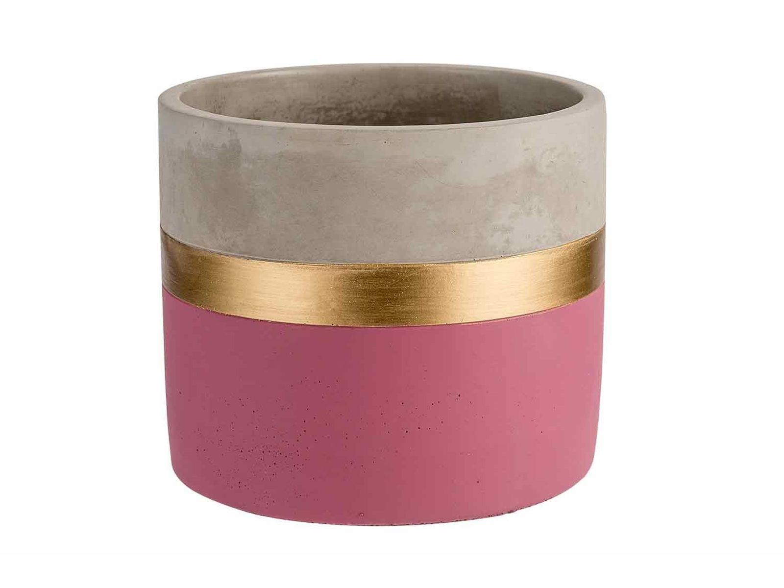 Gold Bloempot Mettalic Line Oud Roze 13, 8x13,8xh11,5cm Cilindrisch Cement