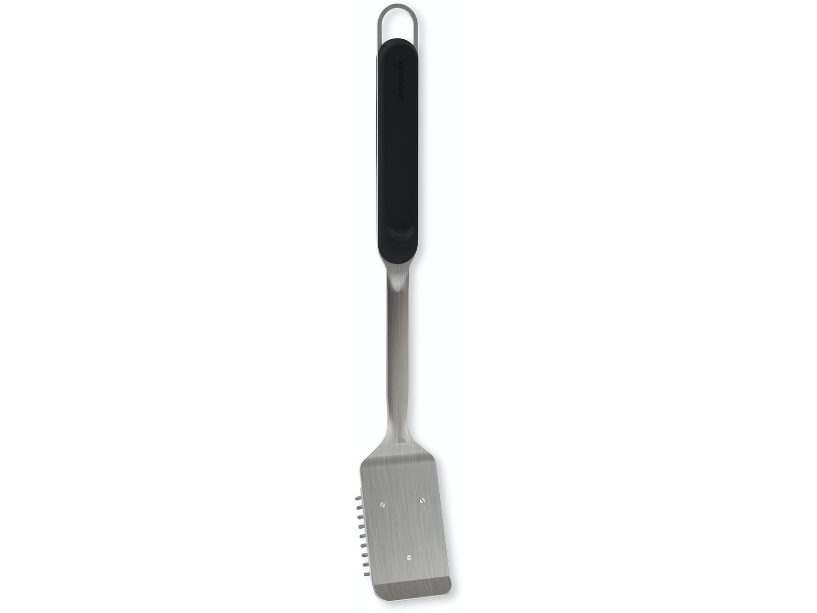 Borstel met ergonomisch handvat voor binnen en buiten gebruik. Vaatwasserbestendig. Hang deze tool op welke barbecue dan ook dankzij de universele haak.