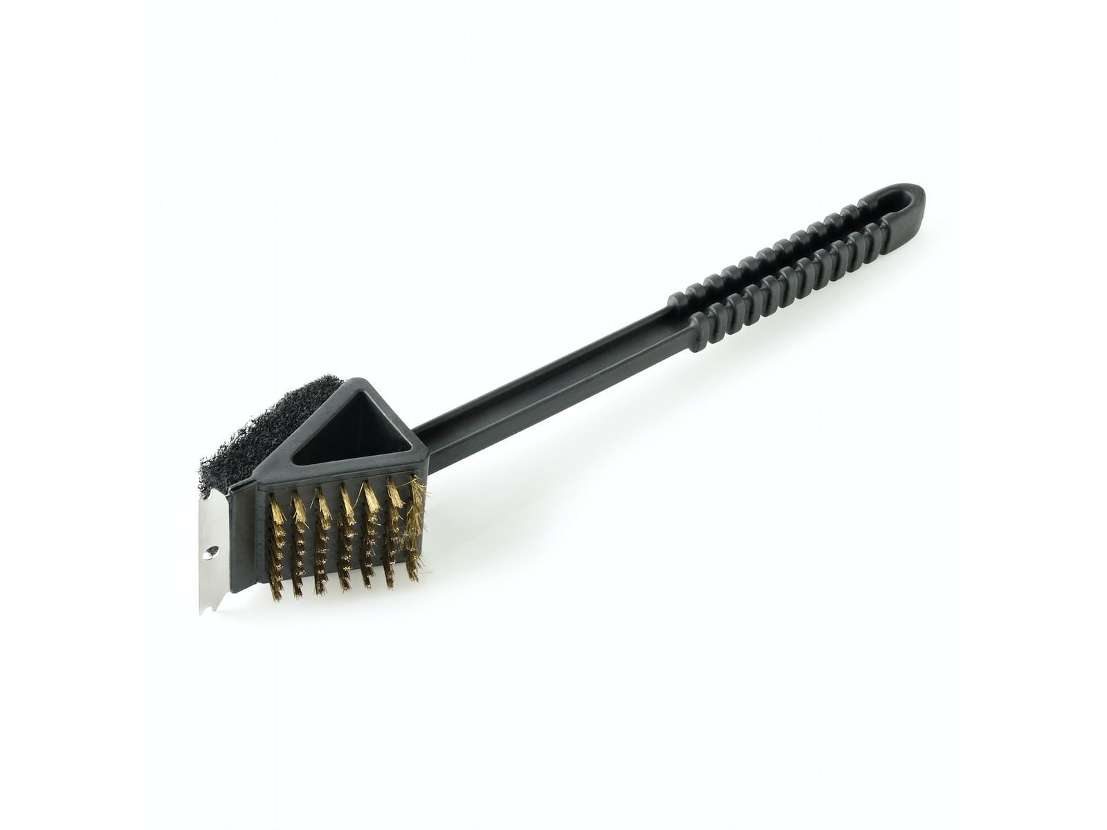 Handige borstel met drie functies: borstelen, schuren en schrapen.