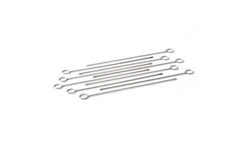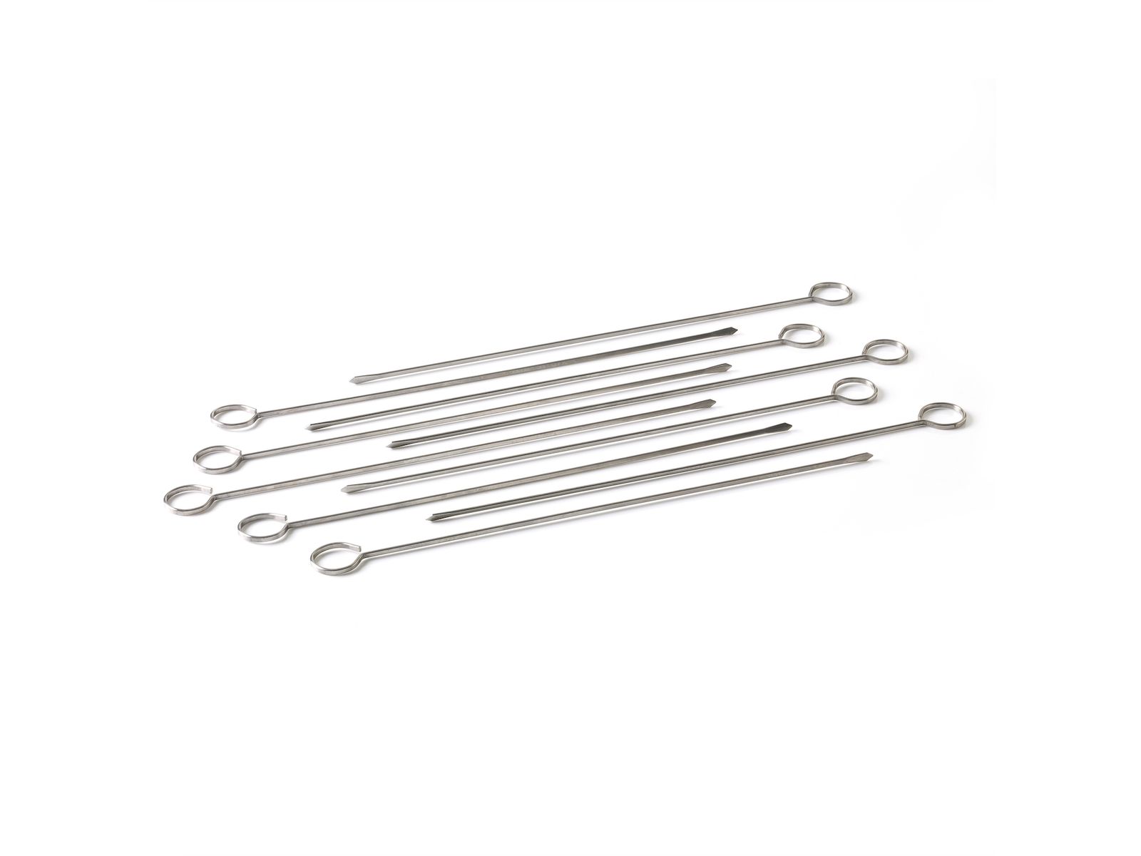 10 stevige spiezen uit roestvast staal. Met afgerond uiteinde, zodat de ingrediënten er niet afschuiven.
