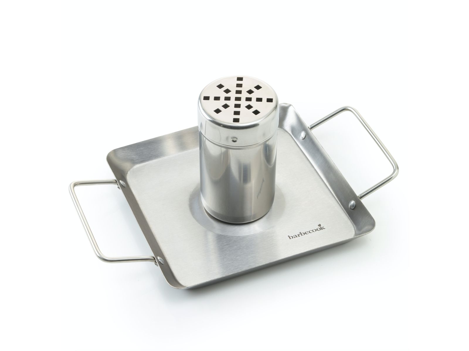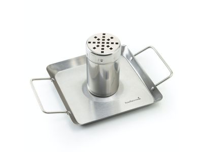 Kiphouder uit roestvast staal om een volledige kip te grillen op de barbecue. Vul de houder met een smaakmaker naar keuze (bier, wijn, kruiden etc.). Te gebruiken op de Barbecook houtskoolbarbecues in combinatie met de Dome. Houder vangt druipend vet op.
