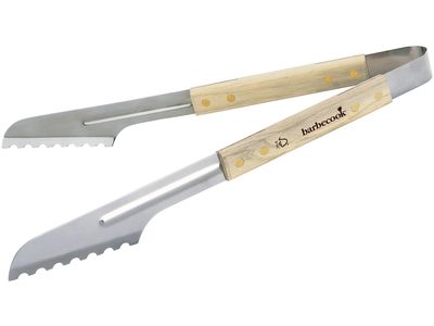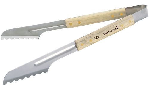 Tang speciaal voor worsten in roestvast staal met berkenhouten handvat, draagt FSC label.
