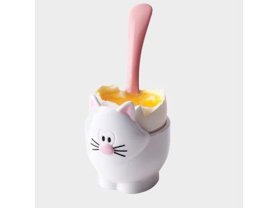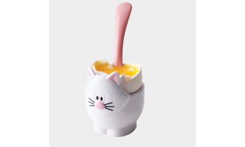 JOIE Meow eierdopje met lepel kat zwart of wit 5.2x5x9cm