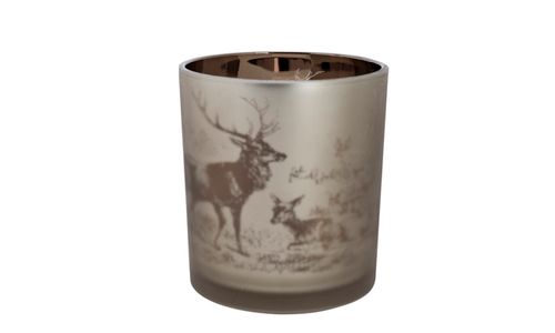 Theelichthouder Winter Bruin 10x10xh12cm Glas