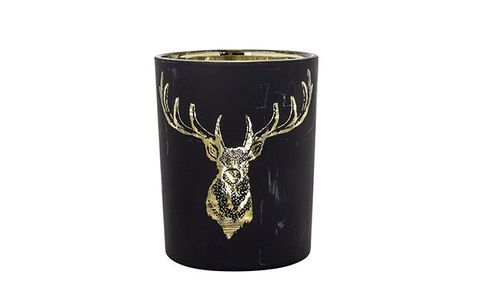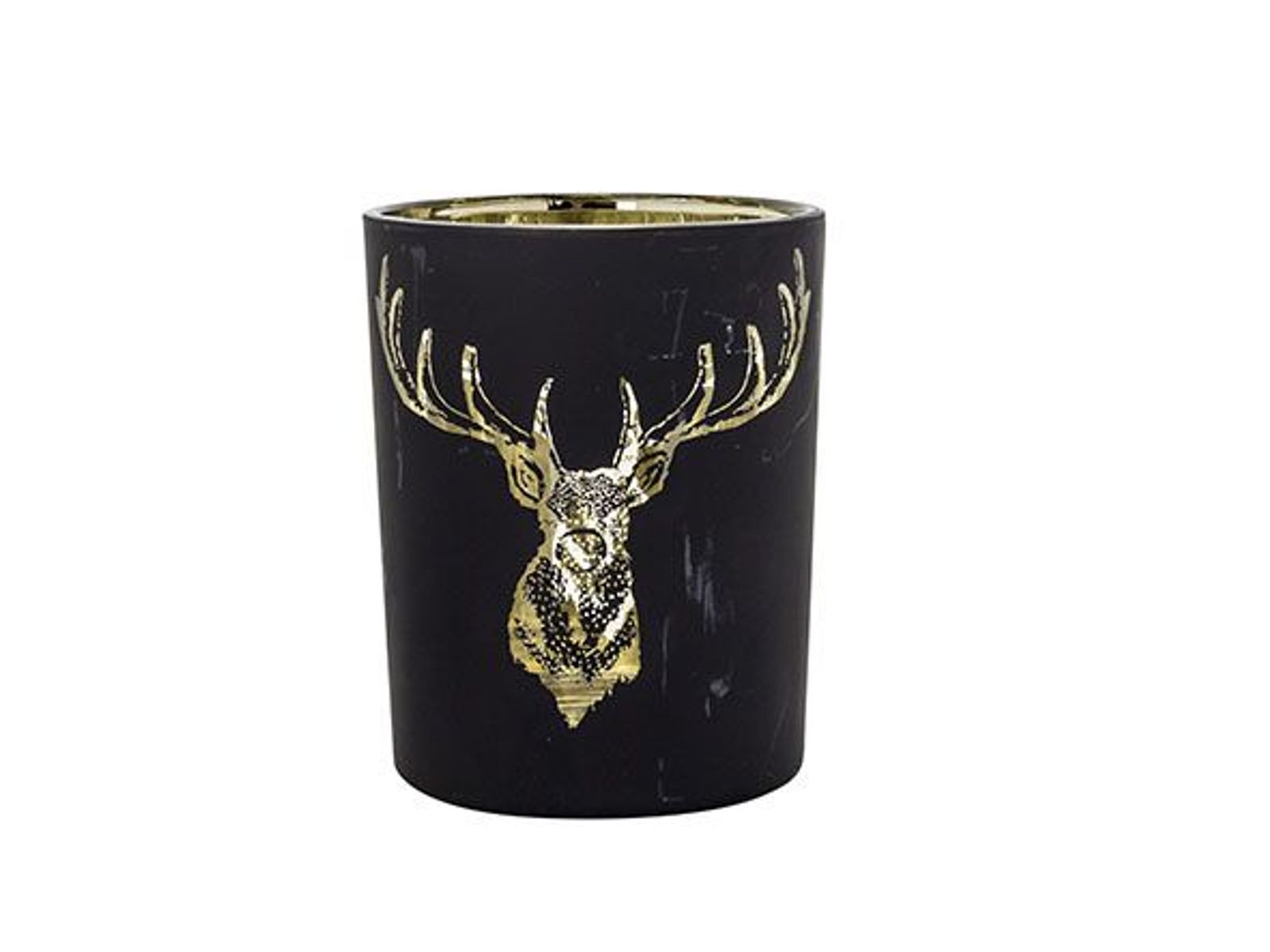 Theelichthouder Deerhead Gold Matt Zwart 10x10xh13cm Rond Glas