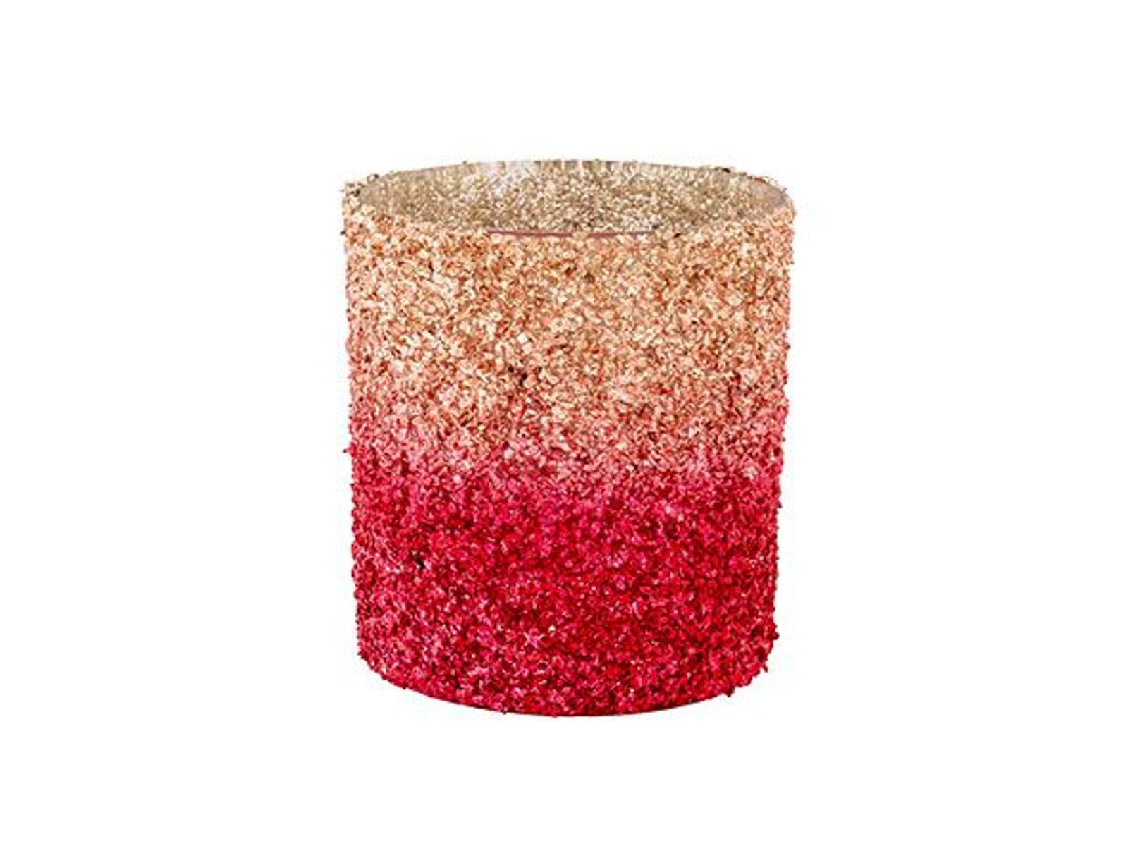 Theelichthouder Glitter Degrade Rood 8x8 Xh9cm Glas