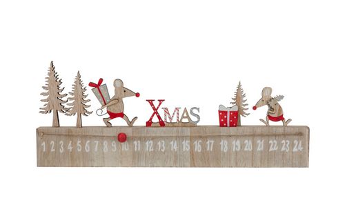 Adventkalender Mouse Rood Grijs 35x2xh13 Cm Hout