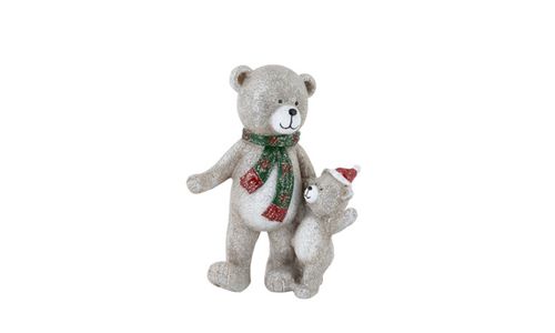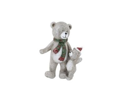 Beer Staand Teddy With Boy Rood-bruin 8 ,5x5xh11,5cm Resin