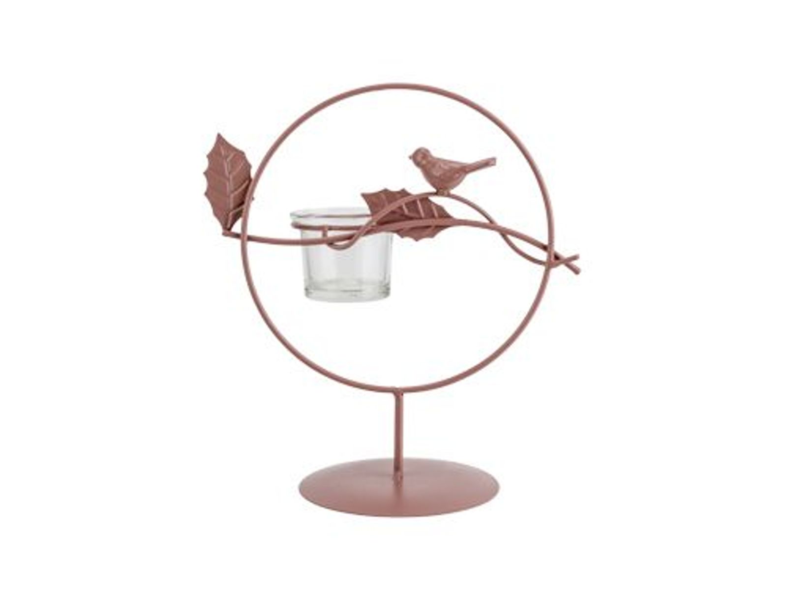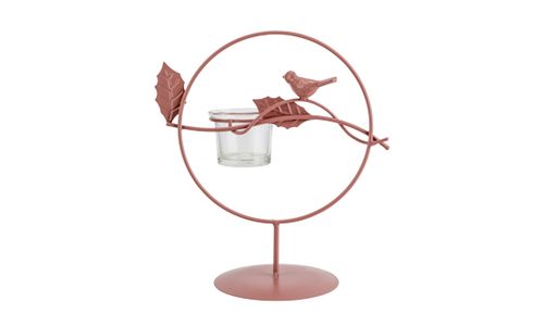Theelichthouder Bird Powder Coated Glass Cup Roze 19,5x10,5xh21cm Rond Metaal