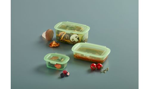 set van 3 voorraaddozen uit silicone groen 200ml, 500ml & 1l