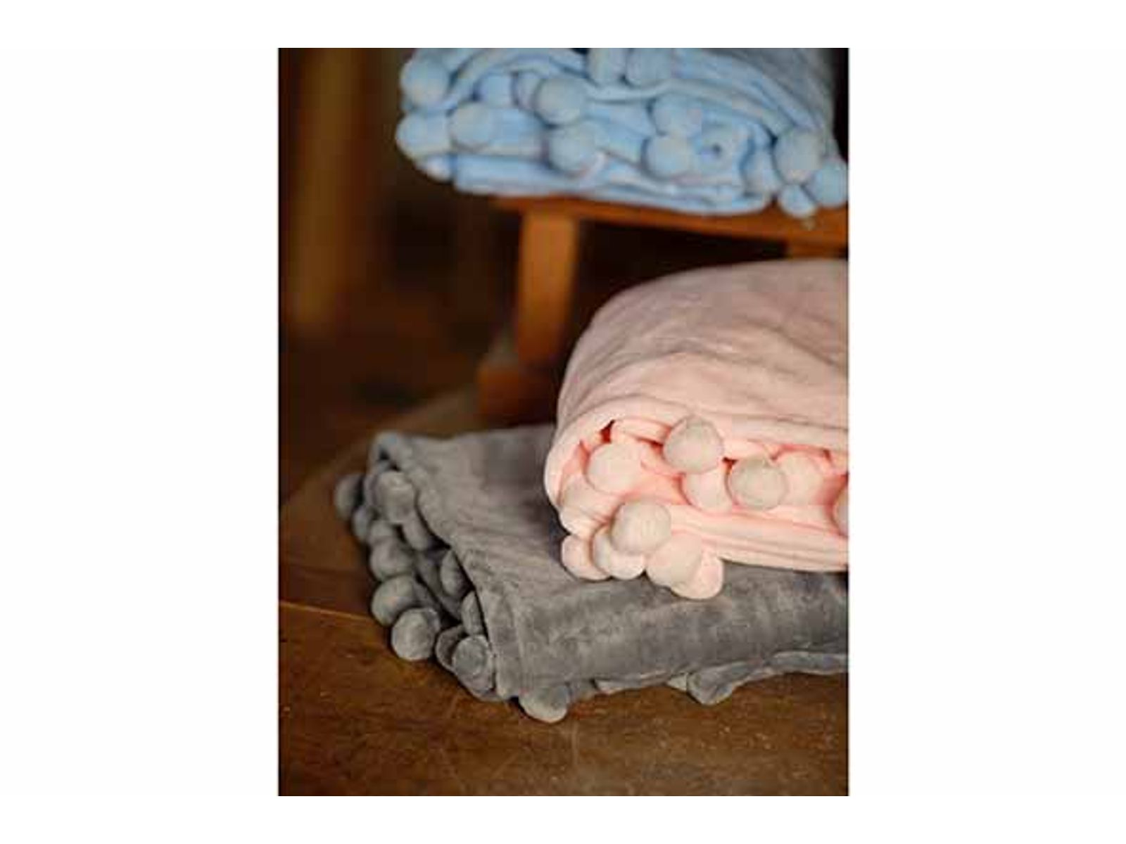Plaid Pompon Lichtroze 140x160cm