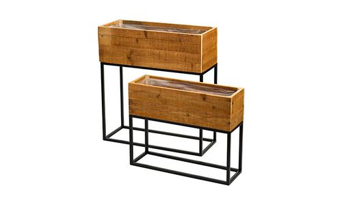 Plantenbak Set2 Rustique Brown 50x16x41c M Zwart 55x21xh60,5cm Rechthoek Metaal