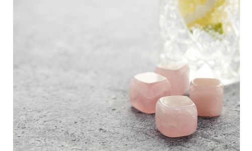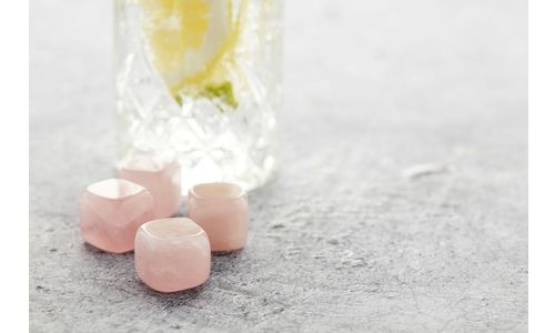 Set van 4 herbruikbare ijsblokjes uit jade roze met zakje