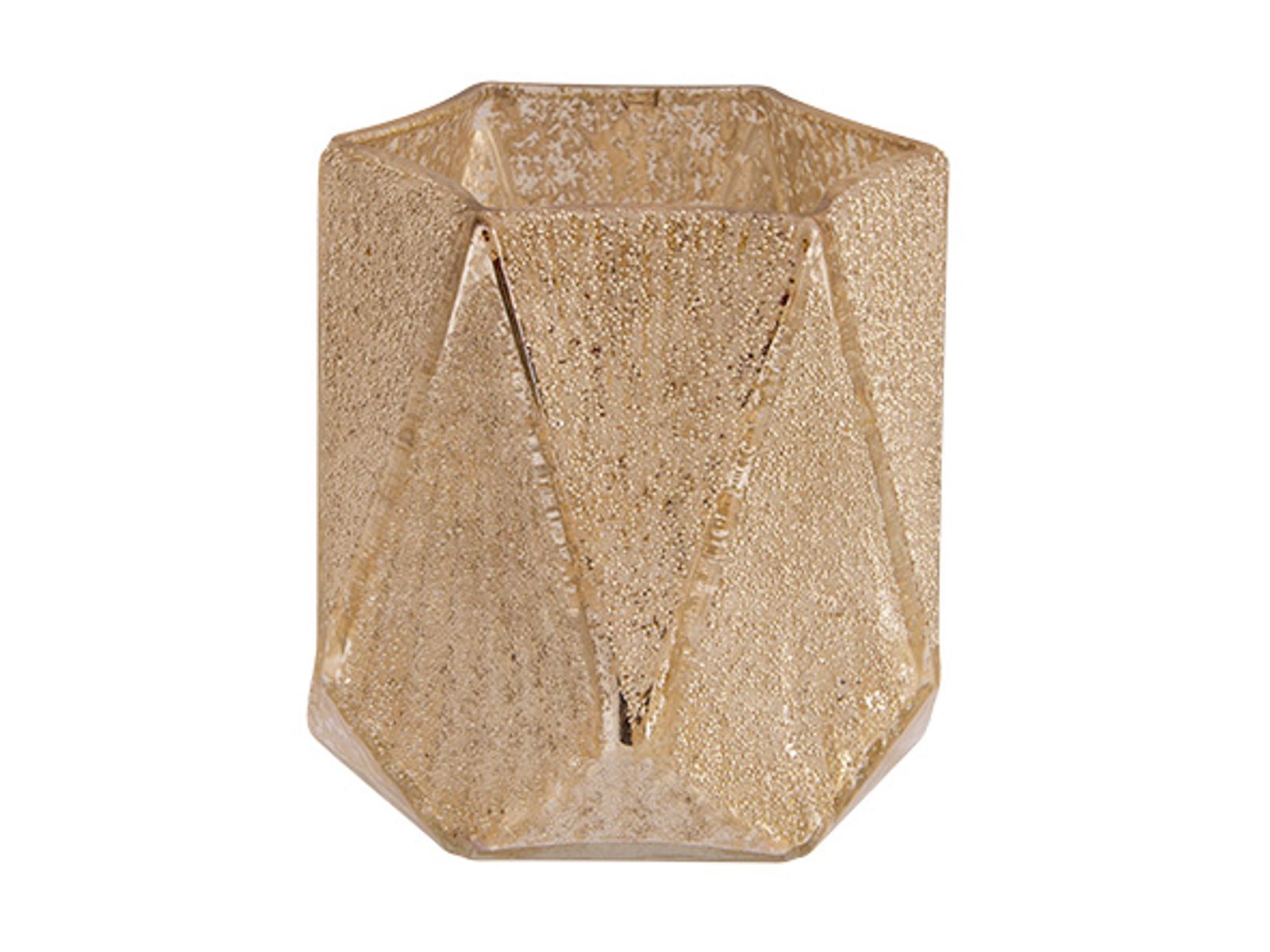 Theelichthouder Champagne 10x10xh10,3cm Zeshoek Glas