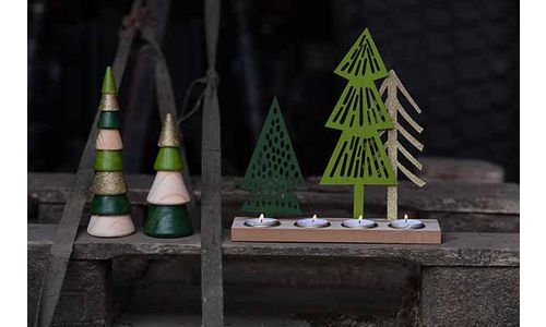 Kerstboom Goldy Green Multi-kleur 6x6xh1 5,5cm Rond Hout