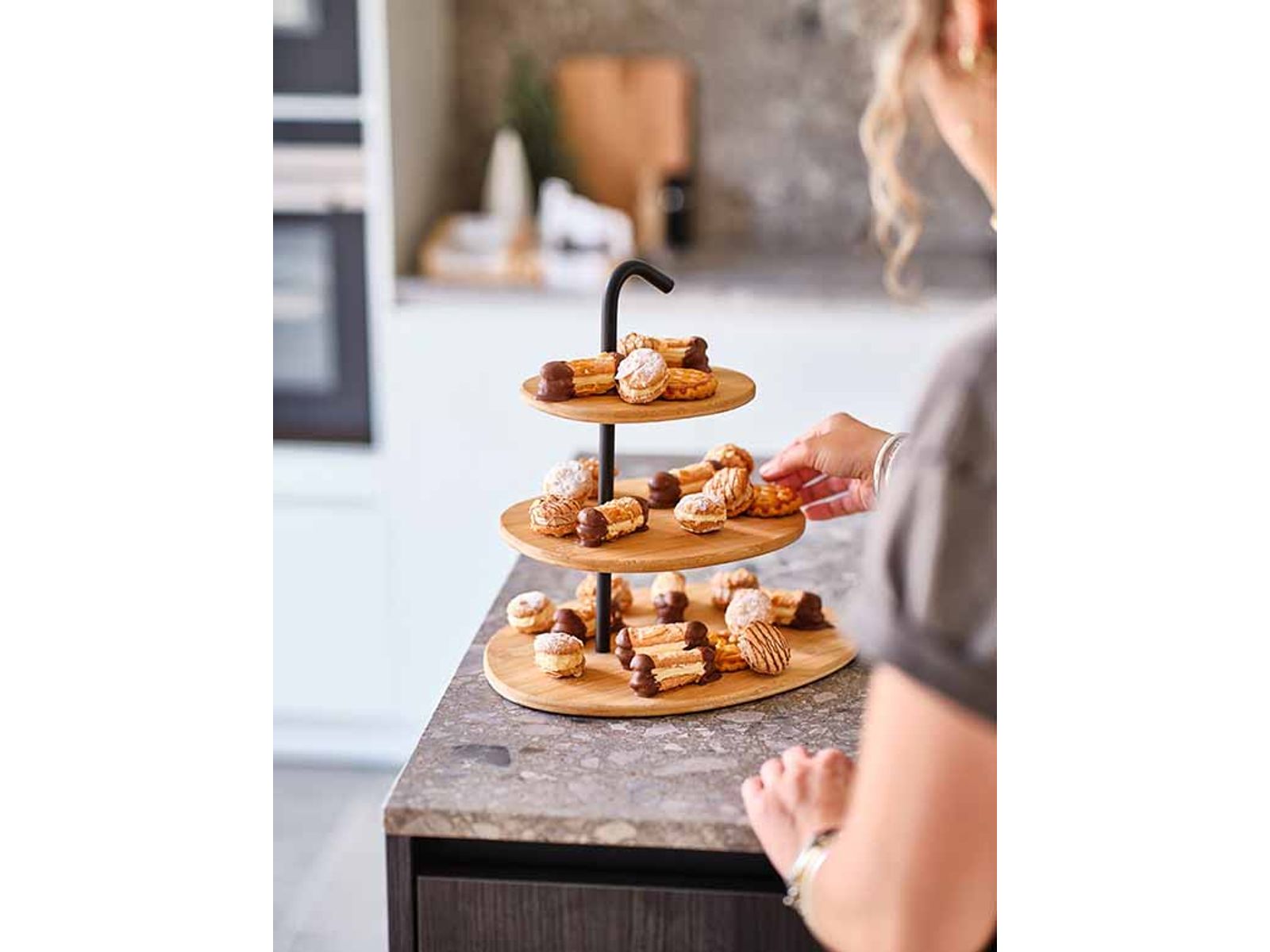 Etagere Met Metalen Houder 3 Verdiepinge N 25x32xh32cm Bamboe