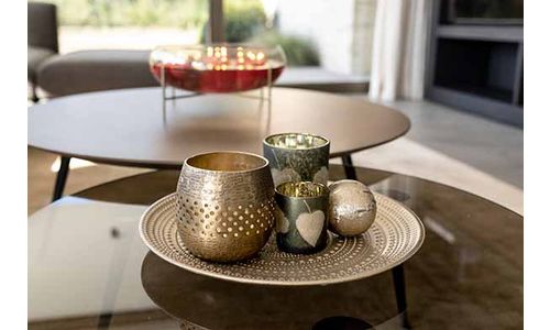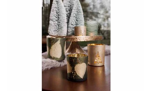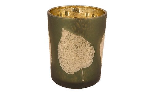 Theelichthouder Leaves Groen D10xh12,5cm Glas