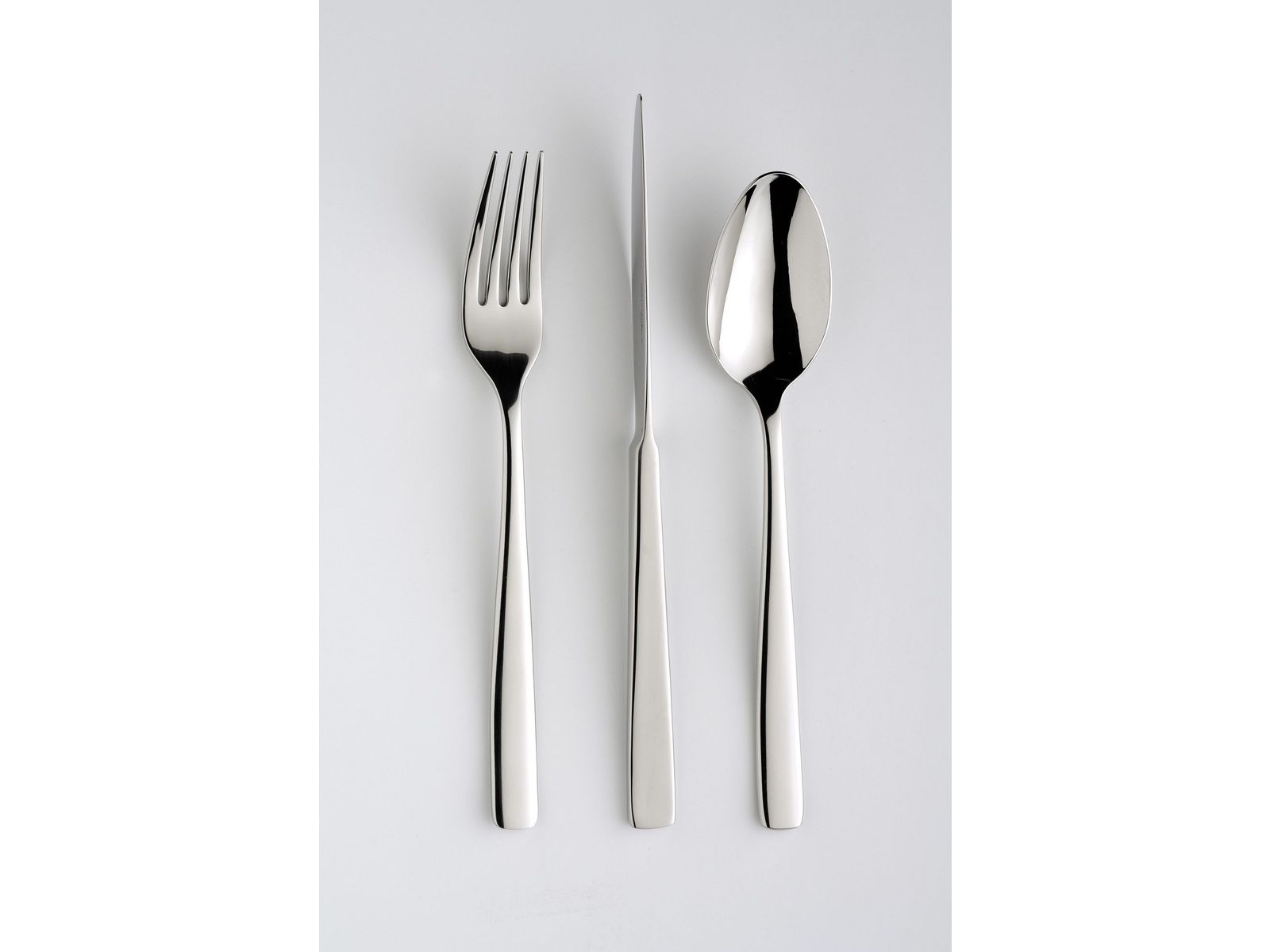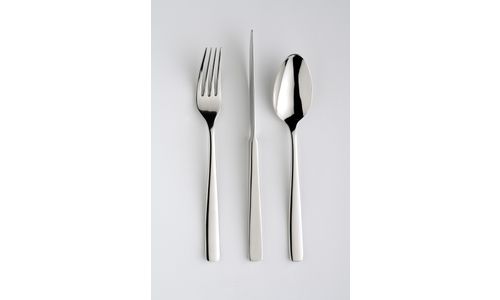 Dit bestek met een erg sober ontwerp wordt gekenmerkt door de messen die op hun snijkant rusten. Traditionele messen zijn echter eveneens verkrijgbaar.