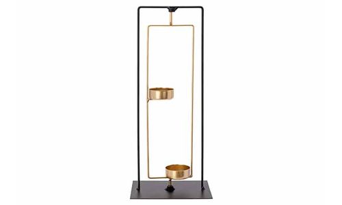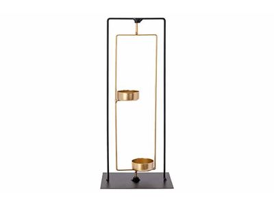 Theelichthouder X2 Gold Combi Zwart 13x8 Xh29,5cm Langwerpig Metaal