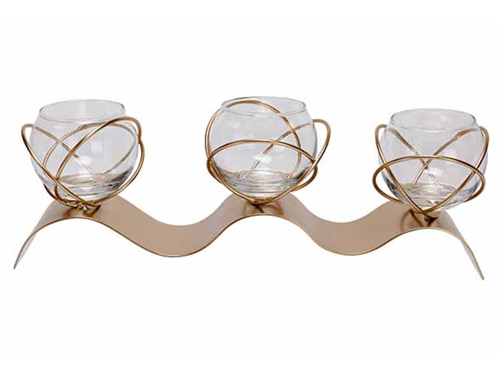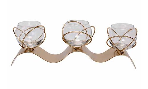 Theelichthouder 3x Glass Cup 5,5cmx6,5cm Goud 29x7xh8cm Langwerpig Metaal