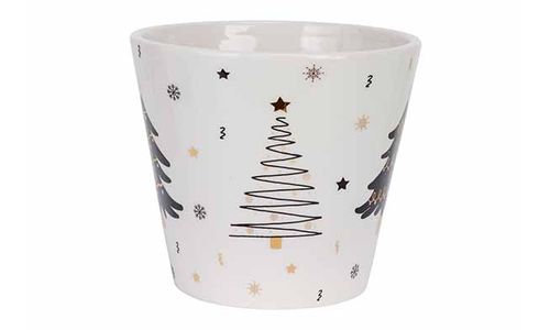 Bloempot Gold Xmas Print Zwart-wit 13,5x 13,5xh12cm Rond Conisch Keramiek
