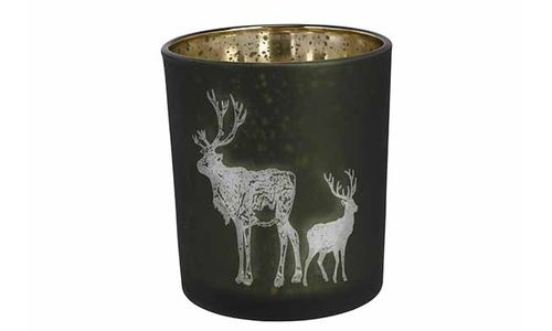 Theelichthouder Deer Groen 9x9xh10cm Gla S