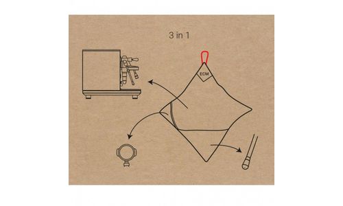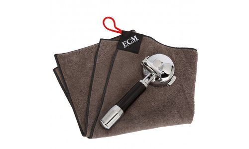De handige 3 in 1 ECM baristadoek van hoogwaardige materialen voor een ideale reiniging van de roestvrijstalen behuizing, het stoompijpje en de portafilters.