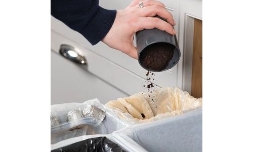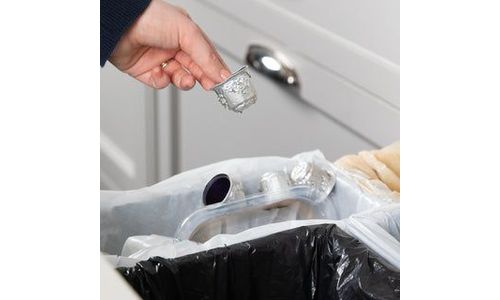 Voeg de aluminium capsule toe aan uw huishoudelijke prullenbak, klaar om opgehaald te worden. Het koffiedik kan thuis worden gecomposteerd of in een afvalbak voor voedselresten worden gedaan.