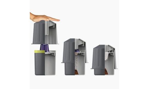 Dualit's EcoPress™ biedt een rommelvrije oplossing voor het recyclen van gebruikte aluminium koffiecapsules. Elk jaar worden er miljoenen aluminium koffiecapsules gekocht en het is van vitaal belang dat ze niet op de vuilnisbelt belanden. De ingenieuze, draagbare EcoPress verwijdert het koffieresidu uit de capsules, waardoor ze snel en eenvoudig kunnen worden gerecycled. Dualit's EcoPress is compatibel met de meeste merken aluminium koffiecapsules ( met uitzondering van capsules voor professionele, 'ingebouwde' en Nespresso®* Vertuo-modellen).