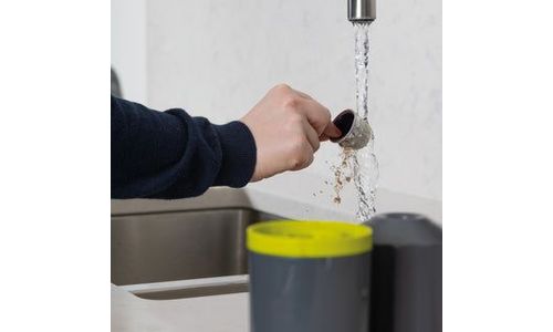 Spoel de capsule om eventueel achtergebleven koffiedik te verwijderen. We raden aan om capsules in een vergiet met je afwaswater uit te spoelen.