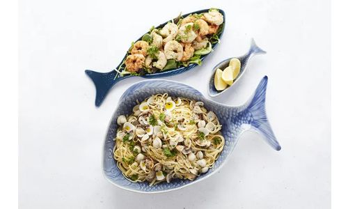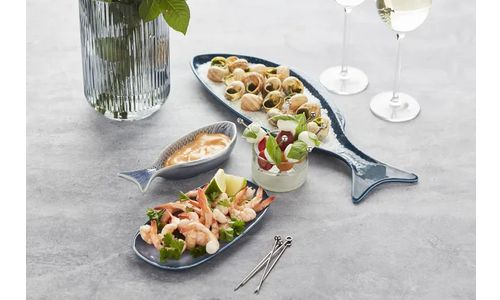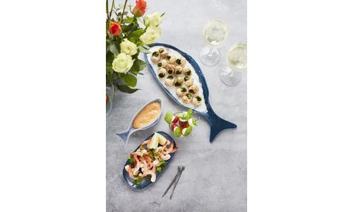 Point-Virgule visschaaltje uit keramiek blauw 18x7cm