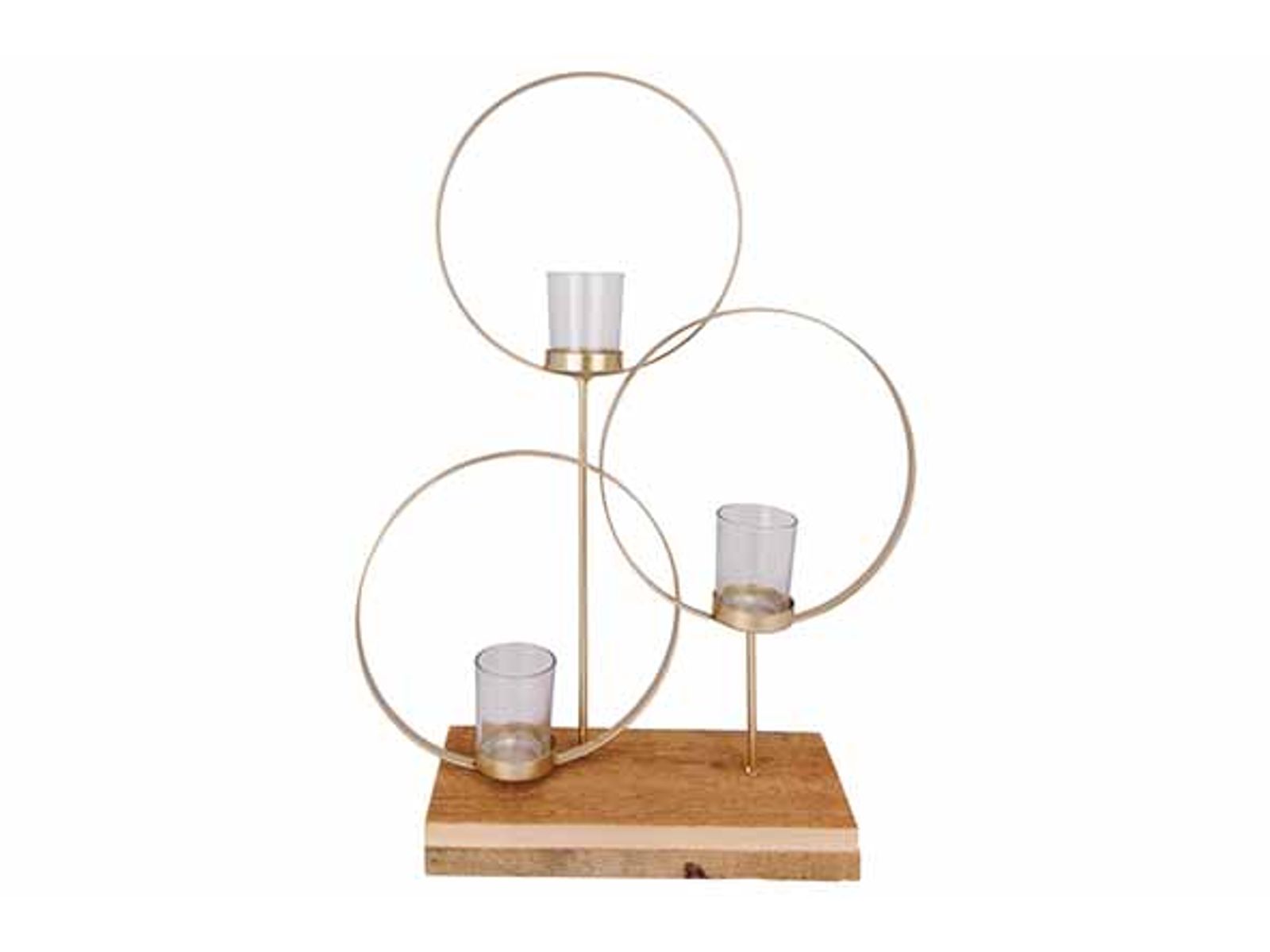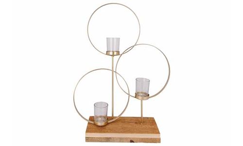 Theelichthouder 3 Circles Goud 35x10xh4 7cm Metaal