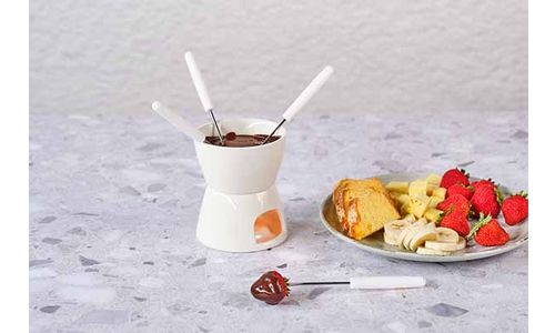 Fondue Chocolade D11,5cm Wit Porselein + 4 Vorken